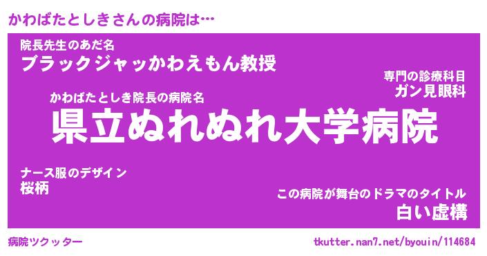 | 男性向けラノベタイトル風あだ名 | 『かわばたとしきの憂鬱』 |