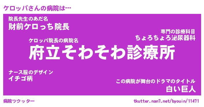 | ファンタジー風あだ名 | 『ケロフェル』『エターナルケロッパー』 |