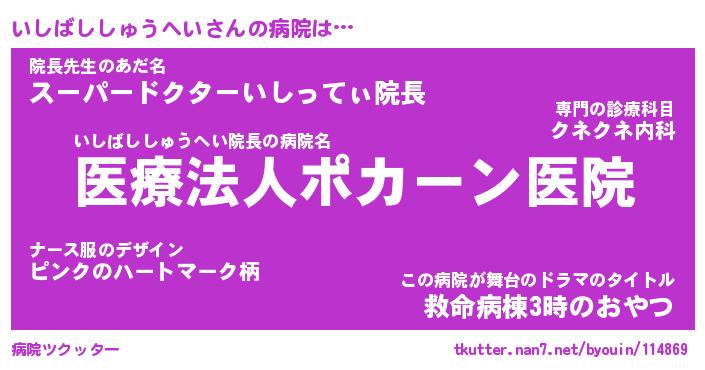 | ヘコむあだ名 | 『いしにゅー』『つくし』『いし太郎』 |