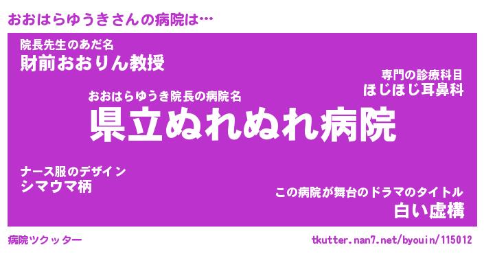 | 男性向けラノベタイトル風あだ名 | 『おおはらゆうきの憂鬱』 |