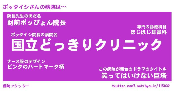 | 男性向けラノベタイトル風あだ名 | 『ポッタイシの憂鬱』 |
