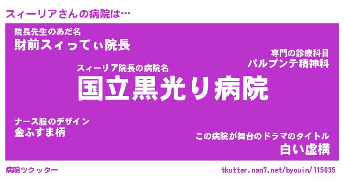 | 男性向けラノベタイトル風あだ名 | 『スィーリアの憂鬱』 |