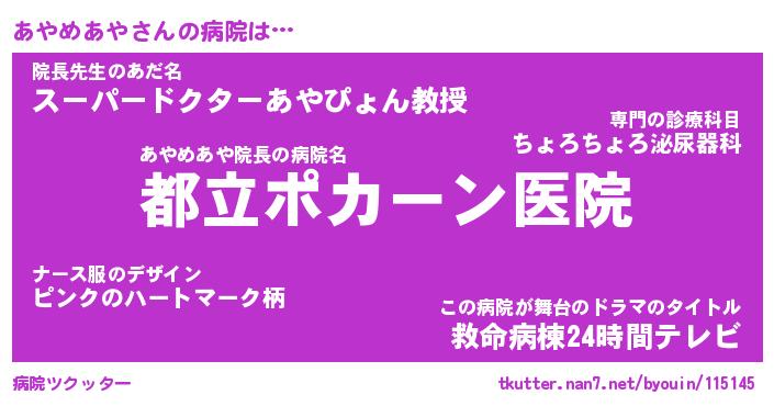 | ポケモン風あだ名 | 『アヤチュウ』『アヤメダネ』 |