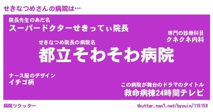 | ファンタジー風あだ名 | 『セキフェル』『エターナルセキナツメー』 |