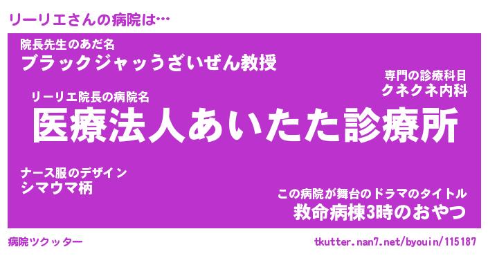 | 2回繰り返すあだ名 | 『リーリー』『リリーー』『うねうね』 |