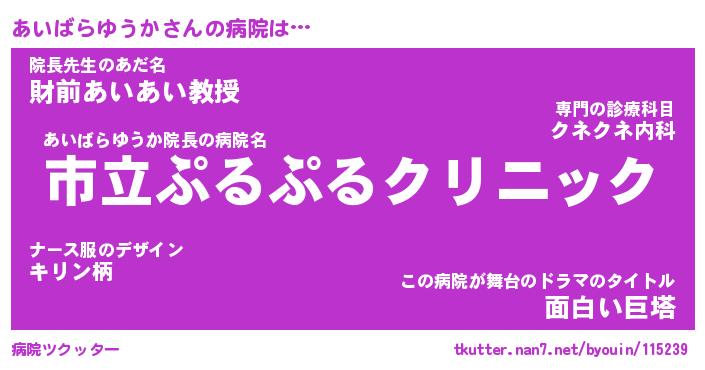 | 恥ずかしいあだ名 | 『プリティーあいばらゆうか』『あいちん』 |