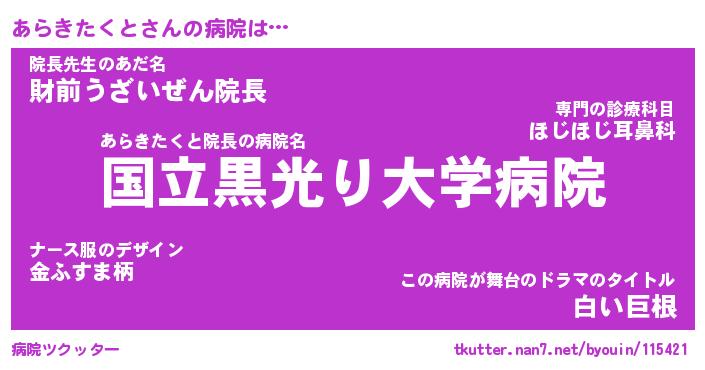 | 男性向けラノベタイトル風あだ名 | 『あらきたくとの憂鬱』 |