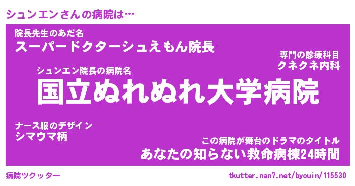 | 2回繰り返すあだ名 | 『シュシュ』『シシュュ』『ねばねば』 |