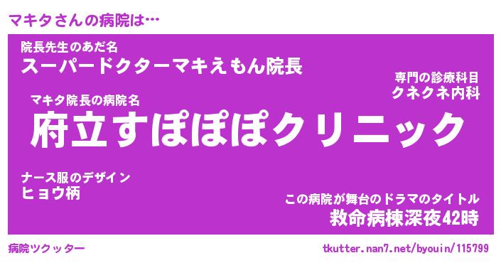 | 男性向けラノベタイトル風あだ名 | 『マキタの憂鬱』 |