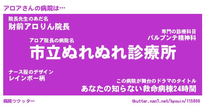 | 男性向けラノベタイトル風あだ名 | 『アロアの憂鬱』 |