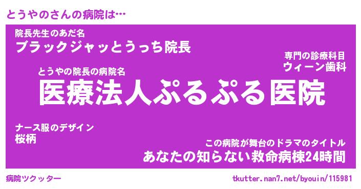 | 意味不明あだ名 | 『ペロリンとうやの』『永久保存とうやの』 |