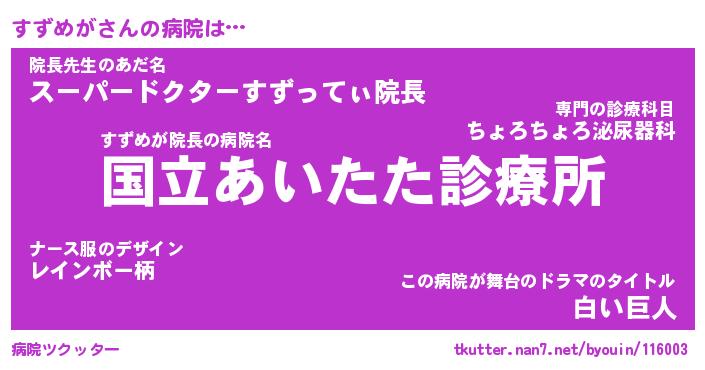 | 意味不明あだ名 | 『ペロリンすずめが』『永久保存すずめが』 |