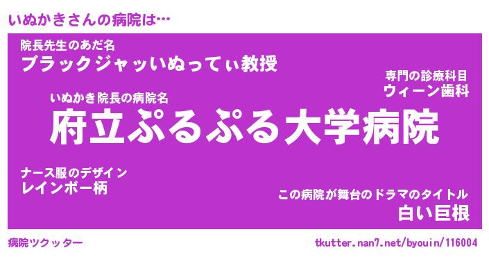 | 2回繰り返すあだ名 | 『いぬいぬ』『いいぬぬ』『ぬれぬれ』 |