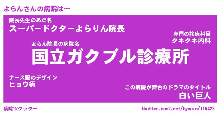 | ヘコむあだ名 | 『よらにゅー』『つくし』『よらを』 |