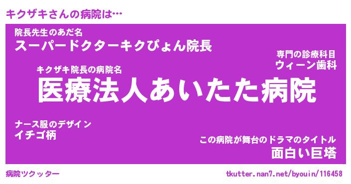 | 意味不明あだ名 | 『ペロリンキクザキ』『永久保存キクザキ』 |