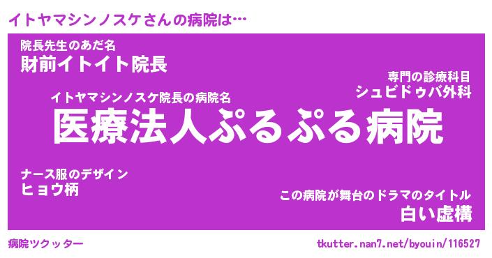 | 欧米人風あだ名 | 『マイケルイトヤマシンノスケ』 |