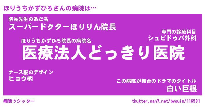 | 肩書あだ名 | 『ほりうちかずひろ御曹司』 |