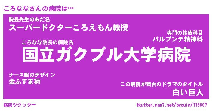 | ヒーロー風カッコイイあだ名 | 『スーパーコロナナ』『暗黒騎士コロ』 |