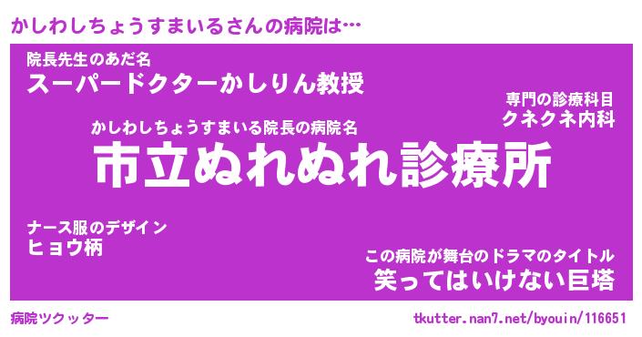 | ツイッター | かしわしちょうすまいるさんのツイッターID『tsukushi_kun』 |