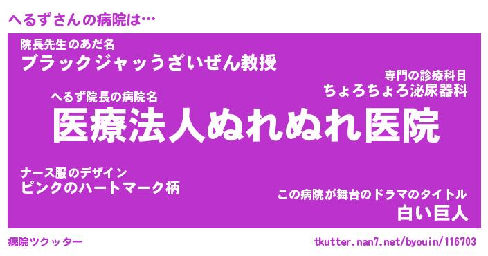 | 2回繰り返すあだ名 | 『へるへる』『へへるる』『ぬれぬれ』 |