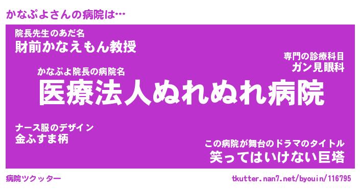 | 意味不明あだ名 | 『ペロリンかなぷよ』『永久保存かなぷよ』 |