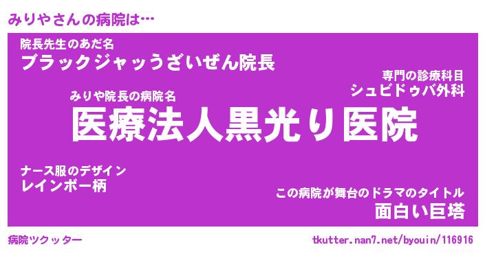 | 肩書あだ名 | 『みりや社長』『みりや国家主席』 |
