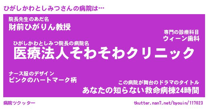 | 意味不明あだ名 | 『ペロリンひがしかわとしみつ』 |