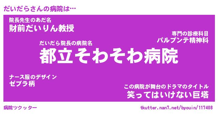 | 意味不明あだ名 | 『ペロリンだいだら』『永久保存だいだら』 |