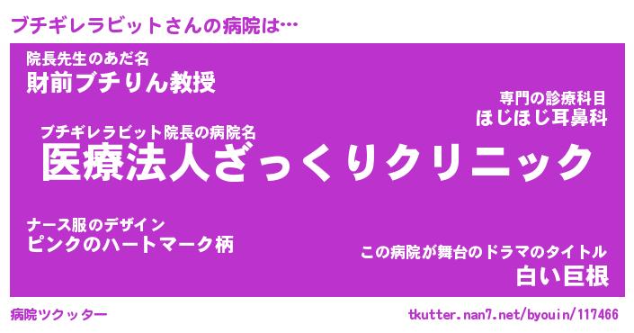 | 2回繰り返すあだ名 | 『ブチブチ』『ブブチチ』『うねうね』 |