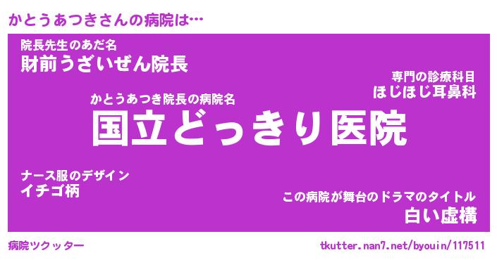 | 胡散臭い通販商品みたいなあだ名 | 『必ず成功する霊験あらたかなお札…その名も「かとうあつき」』 |