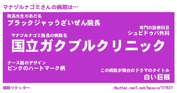 | 男性向けラノベタイトル風あだ名 | 『マナヅルナゴミの憂鬱』 |