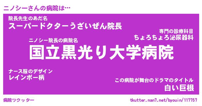 | 男性向けラノベタイトル風あだ名 | 『ニノシーの憂鬱』 |