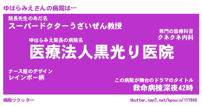 | 胡散臭い通販商品みたいなあだ名 | 『億万長者になれるブレスレット…その名も「ゆはらみえ」』 |