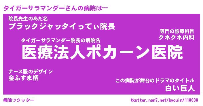 | 欧米人風あだ名 | 『マイケルタイガーサラマンダー』 |