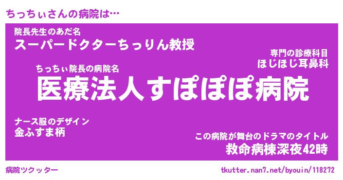 | ヒーロー風カッコイイあだ名 | 『スーパーチッチィ』『天弓騎士チッ』 |