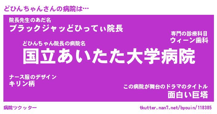 | 男性向けラノベタイトル風あだ名 | 『どひんちゃんの憂鬱』 |