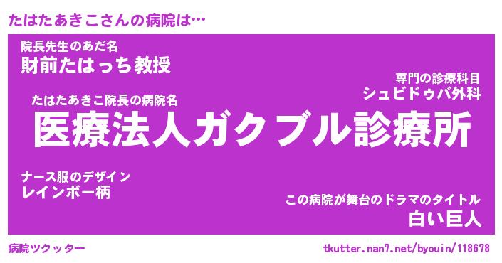 | 肩書あだ名 | 『たはたあきこ店長』『たはたあきこ班長』 |