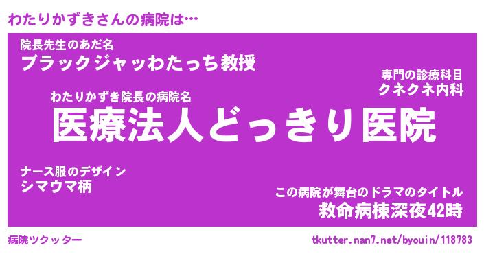 | ヒーロー風カッコイイあだ名 | 『スーパーワタリカズキ』『幻影騎士ワタ』 |