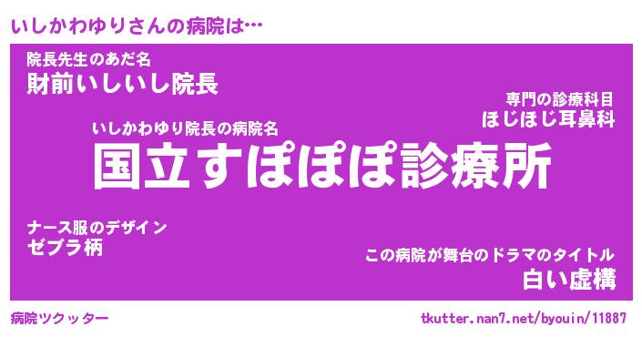 | 伝説のあだ名 | 『伝説のスナイパーいしかわゆり』 |