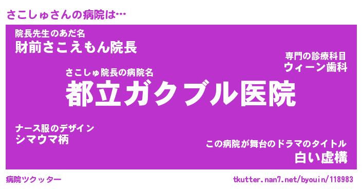 | 意味不明あだ名 | 『ペロリンさこしゅ』『永久保存さこしゅ』 |