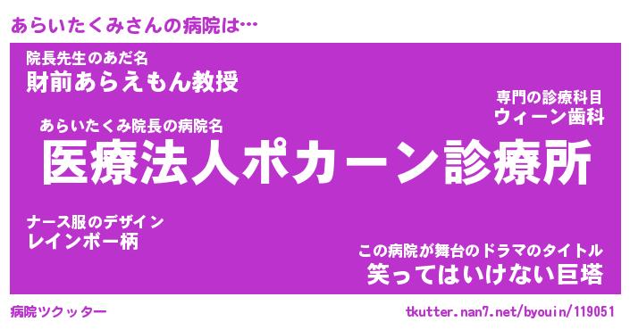 | 肩書あだ名 | 『あらいたくみ店長』『あらいたくみ担任』 |