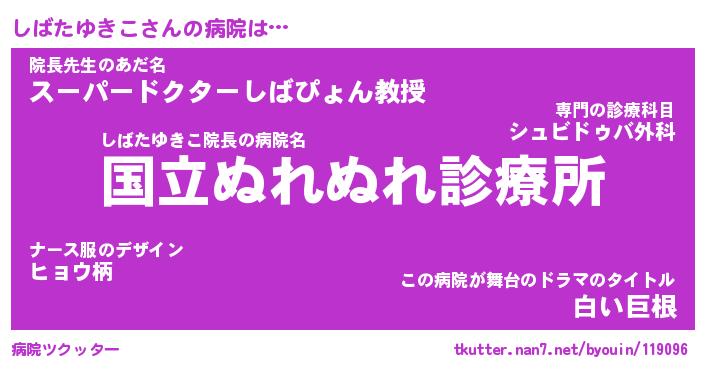 | ヒーロー風カッコイイあだ名 | 『スーパーシバタユキコ』『暗黒騎士シバ』 |