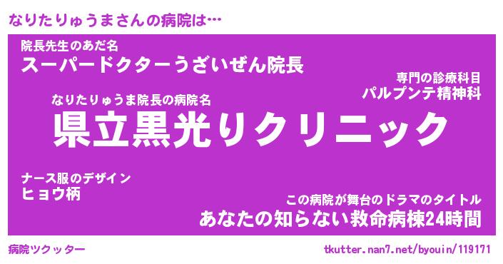 | 男性向けラノベタイトル風あだ名 | 『なりたりゅうまの憂鬱』 |