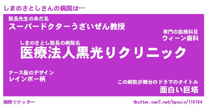 | ヒーロー風カッコイイあだ名 | 『スーパーシマノサトシ』『暗黒騎士シマ』 |