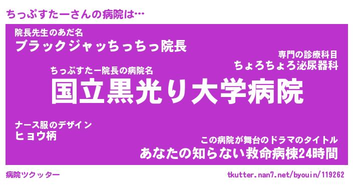 | 女子向けラノベタイトル風あだ名 | 『(仮)ちっぷすたーのやんごとなき事情』 |