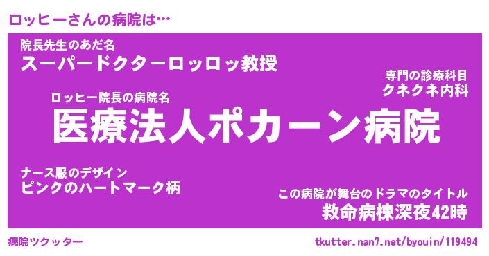| ヘコむあだ名 | 『ロッにゅー』『レバニラ』『ロッお』 |