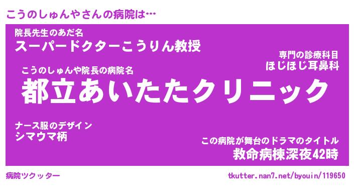 | 肩書あだ名 | 『こうのしゅんや御曹司』 |