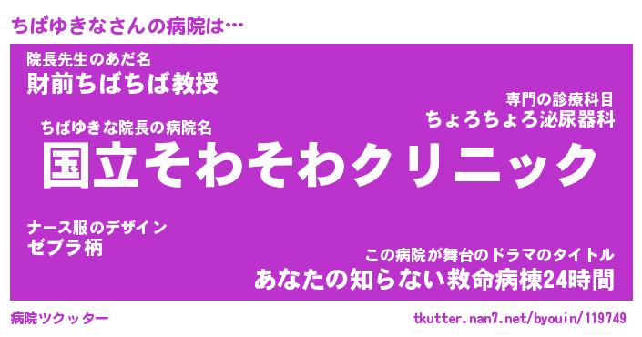 | 女子向けラノベタイトル風あだ名 | 『(仮)ちばゆきなのやんごとなき事情』 |