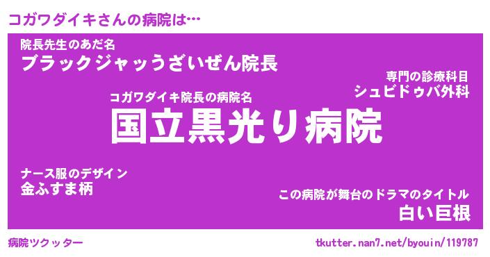 | 男性向けラノベタイトル風あだ名 | 『コガワダイキの憂鬱』 |