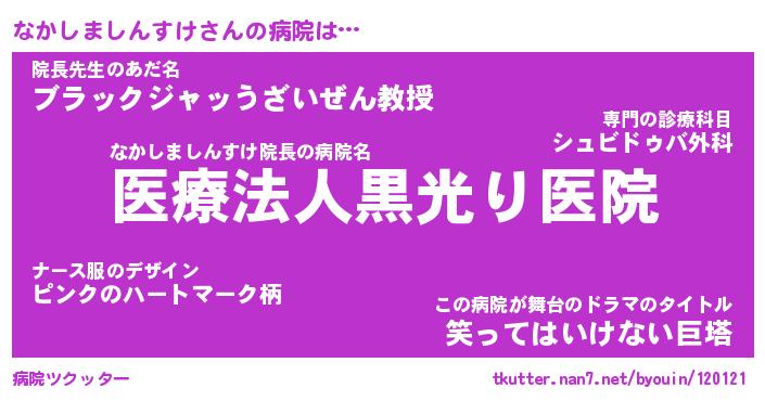 | 胡散臭い通販商品みたいなあだ名 | 『億万長者になれるブレスレット…その名も「なかしましんすけ」』 |